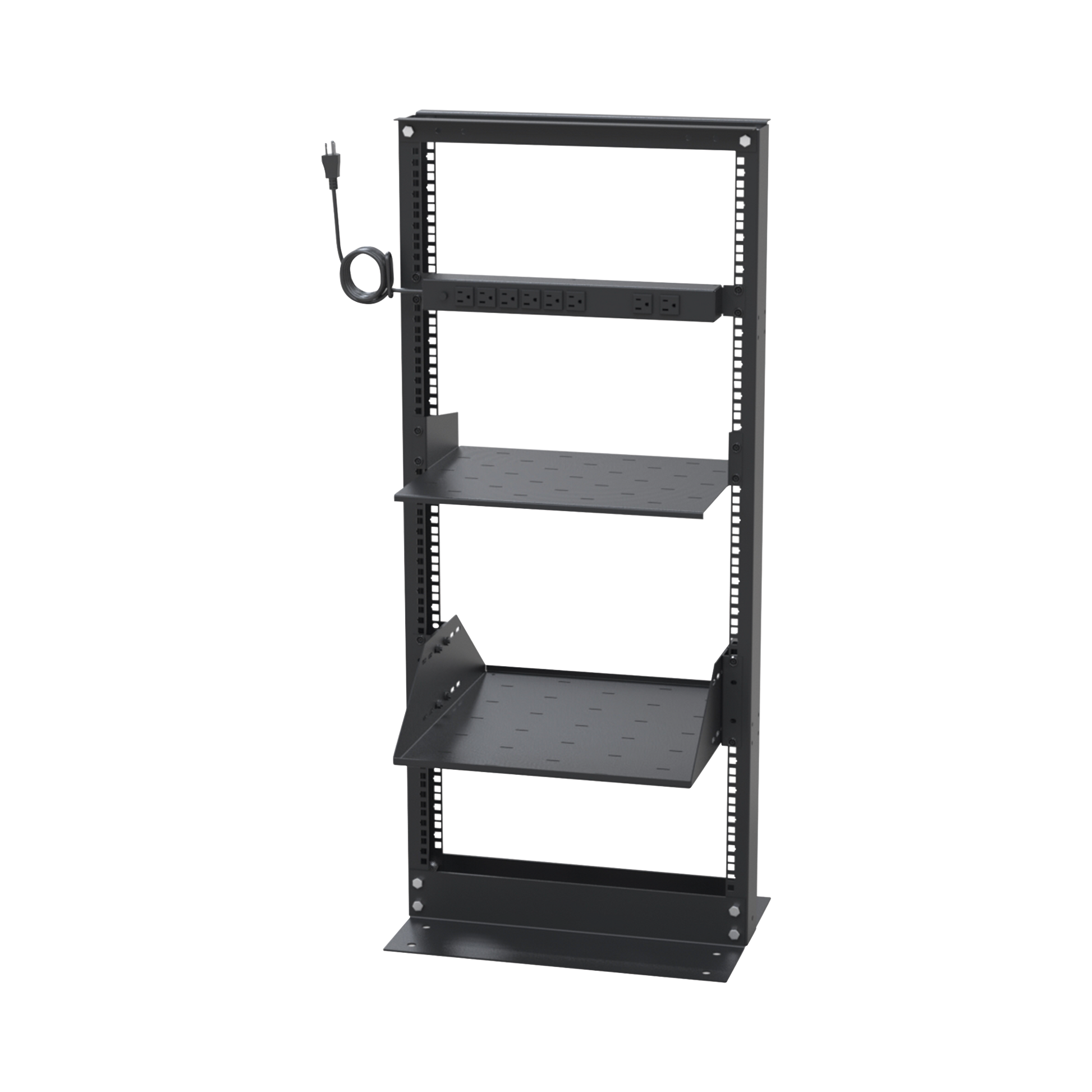 Kit de Rack Estándar 19", 24 UR con 2 Charolas y PDU (8 tomas). Ideal para UPS y Servidores tipo Torre.